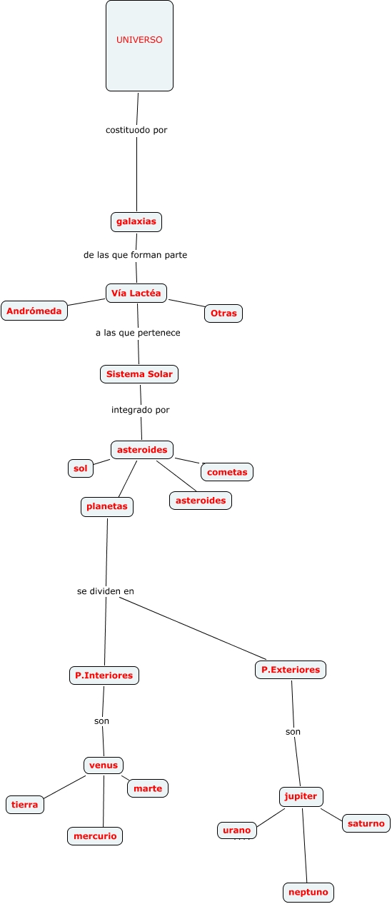 Este mapa conceptual tiene información relacionada a: ud 1 fede diaz, jupiter ???? urano, galaxias de las que forman parte Vía Lactéa, planetas se dividen en P.Interiores, Sistema Solar integrado por asteroides, asteroides ???? asteroides, jupiter ???? saturno, venus ???? mercurio, jupiter ???? neptuno, UNIVERSO costituodo por galaxias, venus ???? tierra