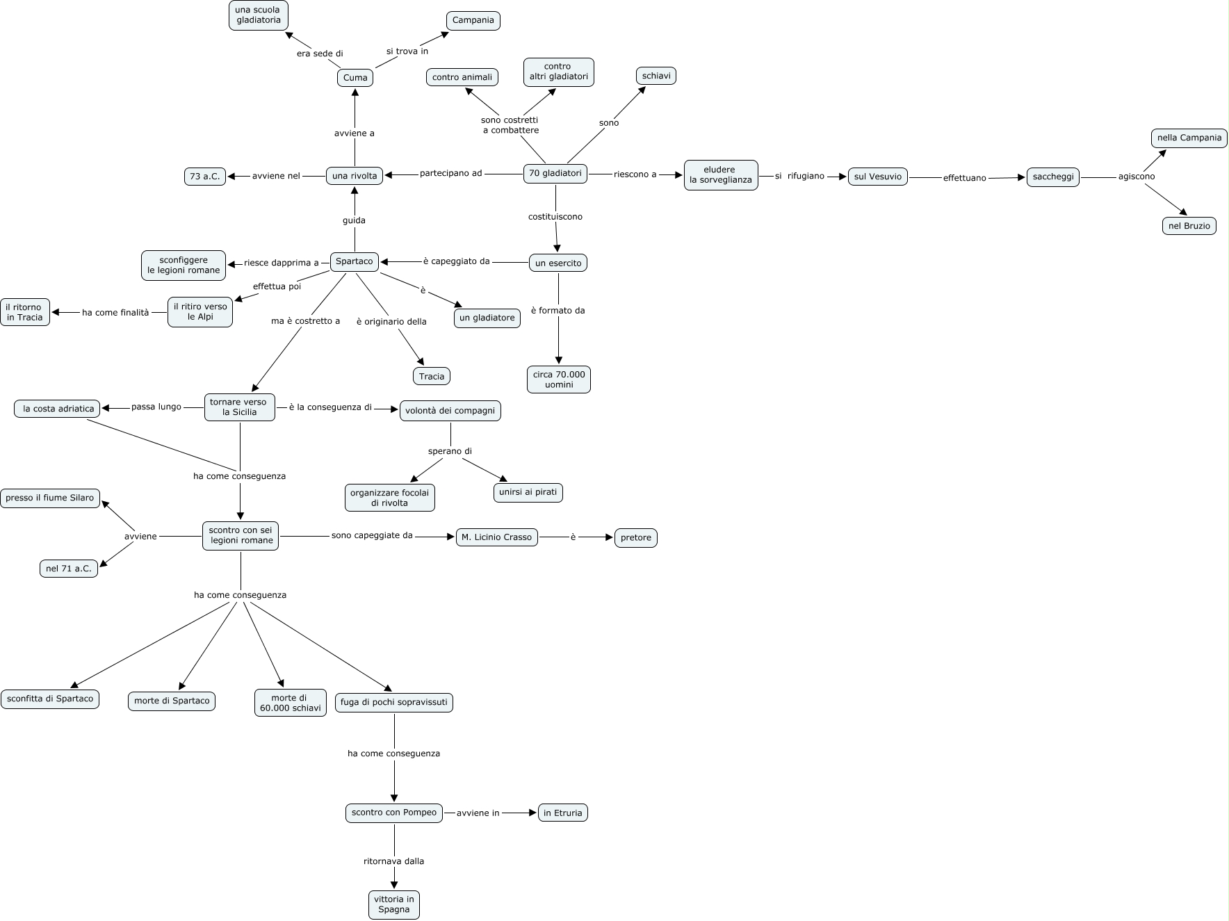 Spartaco, Spartaco è un gladiatore, Spartaco è originario della Tracia, volontà dei compagni sperano di unirsi ai pirati, scontro con sei legioni romane ha come conseguenza morte di Spartaco, un esercito è formato da circa 70.000 uomini, scontro con Pompeo ritornava dalla vittoria in Spagna, tornare verso la Sicilia ha come conseguenza scontro con sei legioni romane, eludere la sorveglianza si rifugiano sul Vesuvio, 70 gladiatori riescono a eludere la sorveglianza, un esercito è capeggiato da Spartaco