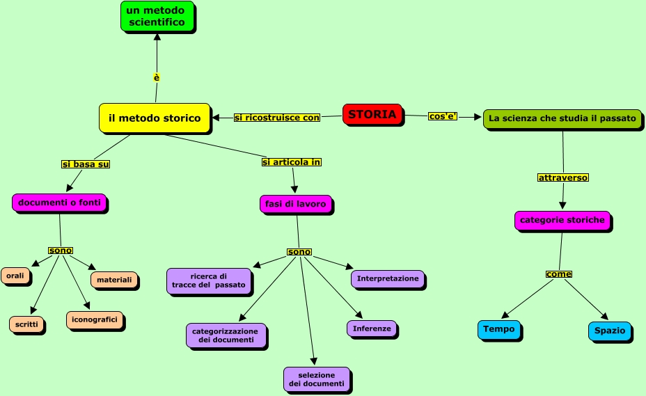 Questa Cmap, creata con IHMC CmapTools, contiene informazioni relative a: Il metodo storico, documenti o fonti sono orali, STORIA si ricostruisce con il metodo storico, categorie storiche come Tempo, fasi di lavoro sono selezione dei documenti, categorie storiche come Spazio, fasi di lavoro sono Inferenze, documenti o fonti sono materiali, documenti o fonti sono iconografici, documenti o fonti sono scritti, La scienza che studia il passato attraverso categorie storiche, fasi di lavoro sono Interpretazione, fasi di lavoro sono ricerca di tracce del passato, STORIA cos'e' La scienza che studia il passato, il metodo storico è un metodo scientifico, fasi di lavoro sono categorizzazione dei documenti, il metodo storico si basa su documenti o fonti, il metodo storico si articola in fasi di lavoro
