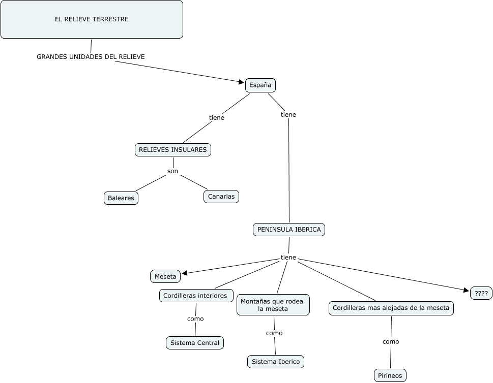 Este mapa conceptual tiene información relacionada a: Esteban Sanchez Verdugo 3A, Cordilleras interiores como Sistema Central, PENINSULA IBERICA tiene Cordilleras mas alejadas de la meseta, Cordilleras mas alejadas de la meseta como Pirineos, PENINSULA IBERICA tiene Montañas que rodea la meseta, España tiene PENINSULA IBERICA, España tiene RELIEVES INSULARES, PENINSULA IBERICA tiene Cordilleras interiores, PENINSULA IBERICA tiene ????, PENINSULA IBERICA tiene Meseta, RELIEVES INSULARES son Baleares