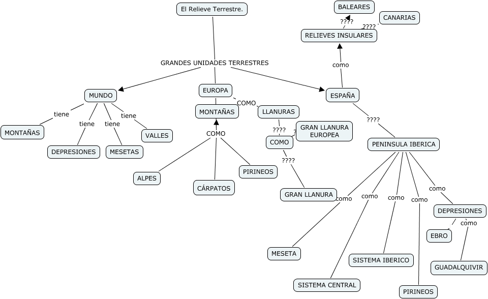 Este mapa conceptual tiene información relacionada a: LUZ MARIA YESTE CARMONA 3º B, EUROPA COMO LLANURAS, El Relieve Terrestre. GRANDES UNIDADES TERRESTRES ESPAÑA, MUNDO tiene MONTAÑAS, PENINSULA IBERICA como MESETA, EUROPA COMO CÁRPATOS, DEPRESIONES como GUADALQUIVIR, ESPAÑA como RELIEVES INSULARES, PENINSULA IBERICA como DEPRESIONES, EUROPA COMO ALPES, MUNDO tiene DEPRESIONES