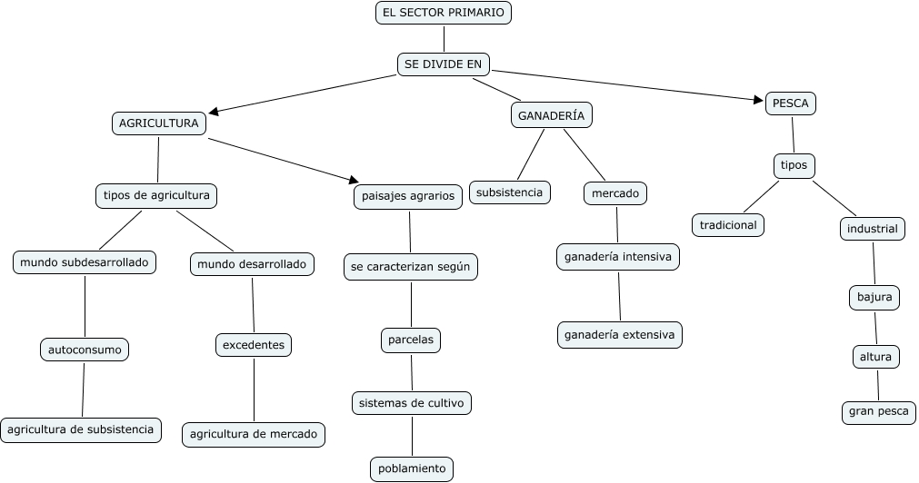 Este mapa conceptual tiene información relacionada a: José Camacho Reyes nº6 3ºA Tema 4, mercado ganadería intensiva, PESCA tipos, SE DIVIDE EN GANADERÍA, autoconsumo agricultura de subsistencia, industrial bajura, tipos de agricultura mundo desarrollado, altura gran pesca, GANADERÍA mercado, ganadería intensiva ganadería extensiva, tipos tradicional
