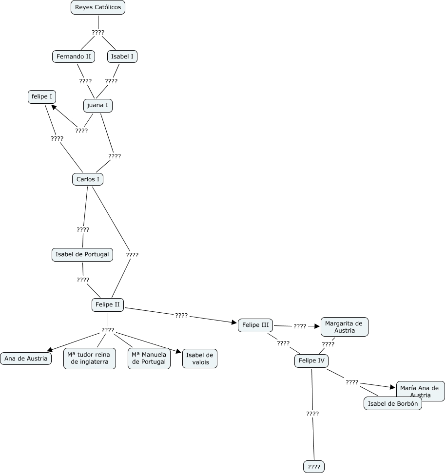 Este mapa conceptual tiene información relacionada a: 06.Daniel Coca Aragón.Reyes catalicos, Felipe IV ???? Isabel de Borbón, Felipe IV ???? ????, Felipe II ???? Ana de Austria, Felipe IV ???? María Ana de Austria, juana I ???? felipe I, Felipe III ???? Felipe IV, Carlos I ???? Isabel de Portugal, Fernando II ???? juana I, Felipe II ???? Mª Manuela de Portugal, Margarita de Austria ???? Felipe IV