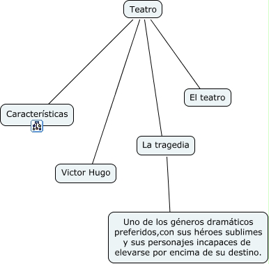 Este mapa conceptual tiene información relacionada a: TEATRO, La tragedia ???? Uno de los géneros dramáticos preferidos,con sus héroes sublimes y sus personajes incapaces de elevarse por encima de su destino., Teatro ???? Victor Hugo, Teatro ???? El teatro, Teatro ???? Características, Teatro ???? La tragedia