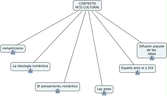 Este mapa conceptual tiene información relacionada a: conetxo historico cultural original, CONTEXTO HCO.CULTURAL ???? Difusión popular de las ideas, CONTEXTO HCO.CULTURAL ???? romanticismo, CONTEXTO HCO.CULTURAL ???? Las artes, CONTEXTO HCO.CULTURAL ???? El pensamiento romántico, CONTEXTO HCO.CULTURAL ???? La ideología romántica, CONTEXTO HCO.CULTURAL ???? España ante el s.XIX