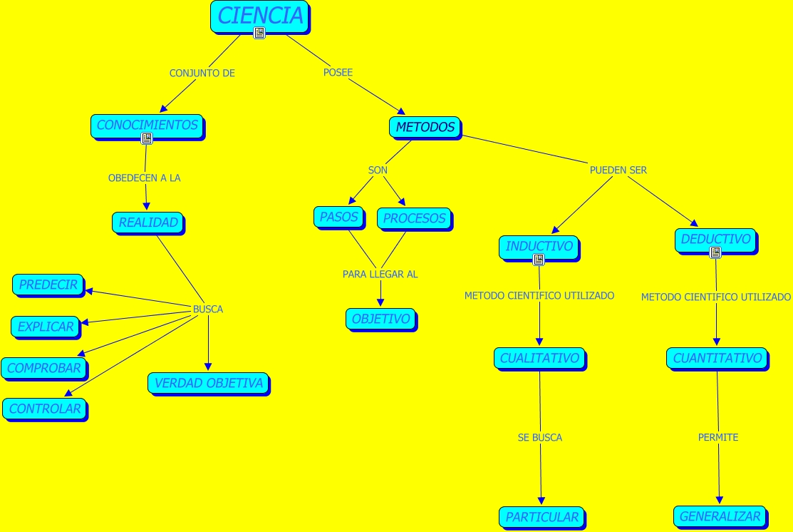 Este Cmap, tiene información relacionada con: Copia_de_CIENCIA_, CIENCIA POSEE METODOS, DEDUCTIVO METODO CIENTIFICO UTILIZADO CUANTITATIVO, CONOCIMIENTOS OBEDECEN A LA REALIDAD, REALIDAD BUSCA COMPROBAR, PASOS PARA LLEGAR AL OBJETIVO, CUALITATIVO SE BUSCA PARTICULAR, PROCESOS PARA LLEGAR AL OBJETIVO, REALIDAD BUSCA CONTROLAR, REALIDAD BUSCA PREDECIR, REALIDAD BUSCA EXPLICAR, METODOS PUEDEN SER DEDUCTIVO, CUANTITATIVO PERMITE GENERALIZAR, CIENCIA CONJUNTO DE CONOCIMIENTOS, METODOS SON PROCESOS, REALIDAD BUSCA VERDAD OBJETIVA, METODOS SON PASOS, METODOS PUEDEN SER INDUCTIVO, INDUCTIVO METODO CIENTIFICO UTILIZADO CUALITATIVO