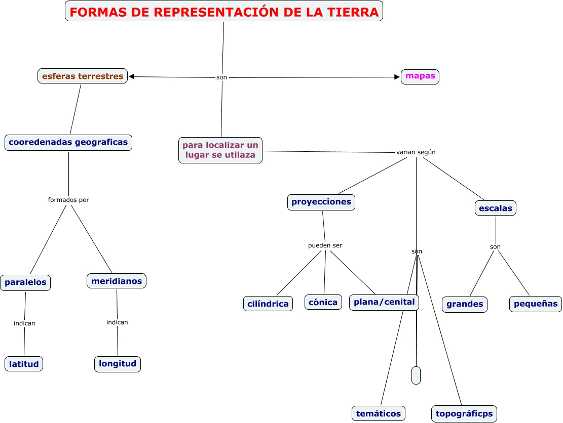 Este mapa conceptual tiene información relacionada a: ud2 rocio, para localizar un lugar se utilaza varian según , FORMAS DE REPRESENTACIÓN DE LA TIERRA son mapas, son temáticos, cooredenadas geograficas formados por paralelos, escalas son grandes, proyecciones pueden ser cónica, proyecciones pueden ser plana/cenital, para localizar un lugar se utilaza varian según proyecciones, escalas son pequeñas, paralelos indican latitud