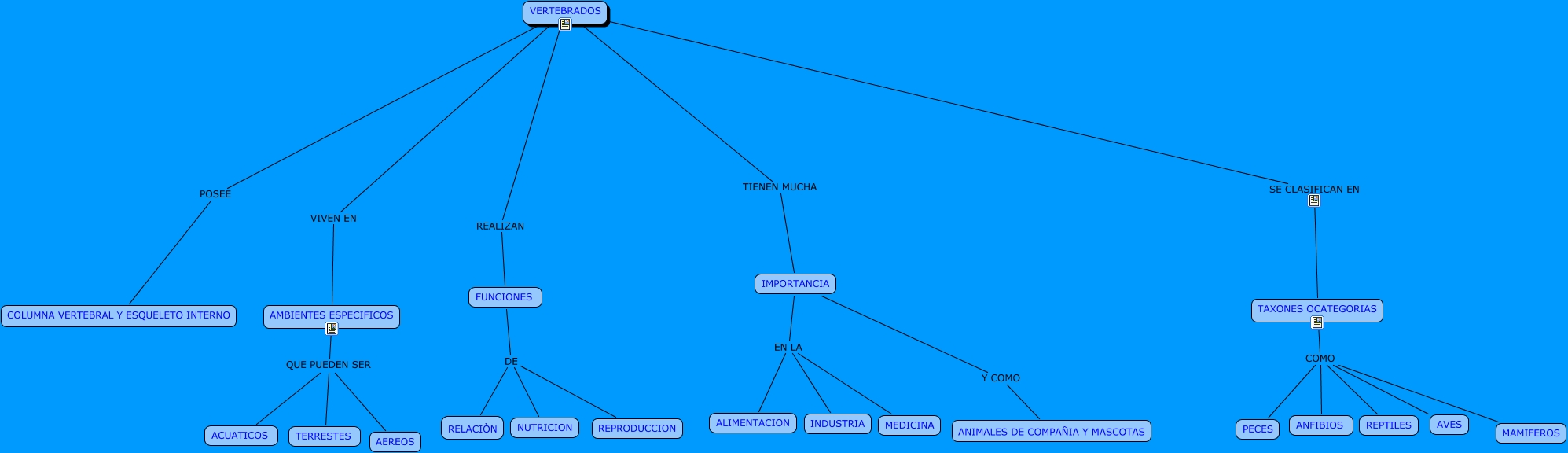 Este Cmap, tiene información relacionada con: VERTEBRADOS, AMBIENTES ESPECIFICOS QUE PUEDEN SER ACUATICOS, AMBIENTES ESPECIFICOS QUE PUEDEN SER AEREOS, TAXONES OCATEGORIAS COMO AVES, TAXONES OCATEGORIAS COMO PECES, TAXONES OCATEGORIAS COMO MAMIFEROS, TAXONES OCATEGORIAS COMO REPTILES, AMBIENTES ESPECIFICOS QUE PUEDEN SER TERRESTES, VERTEBRADOS TIENEN MUCHA IMPORTANCIA, IMPORTANCIA EN LA INDUSTRIA, FUNCIONES DE REPRODUCCION, VERTEBRADOS VIVEN EN AMBIENTES ESPECIFICOS, IMPORTANCIA Y COMO ANIMALES DE COMPAÑIA Y MASCOTAS, VERTEBRADOS SE CLASIFICAN EN TAXONES OCATEGORIAS, IMPORTANCIA EN LA ALIMENTACION, FUNCIONES DE RELACIÒN, IMPORTANCIA EN LA MEDICINA, VERTEBRADOS POSEE COLUMNA VERTEBRAL Y ESQUELETO INTERNO, TAXONES OCATEGORIAS COMO ANFIBIOS, VERTEBRADOS REALIZAN FUNCIONES, FUNCIONES DE NUTRICION