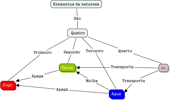 Este Mapa Conceitual tem informações relacionadas a: Quatro elementos, Terra Apaga Fogo, Quatro Terceiro Água, Ar Transporta Água, Quatro Segundo Terra, Ar Transporta Terra, Água Molha Terra, Quatro Primeiro Fogo, Água Apaga Fogo, Quatro Quarto Ar, Elementos da natureza São Quatro