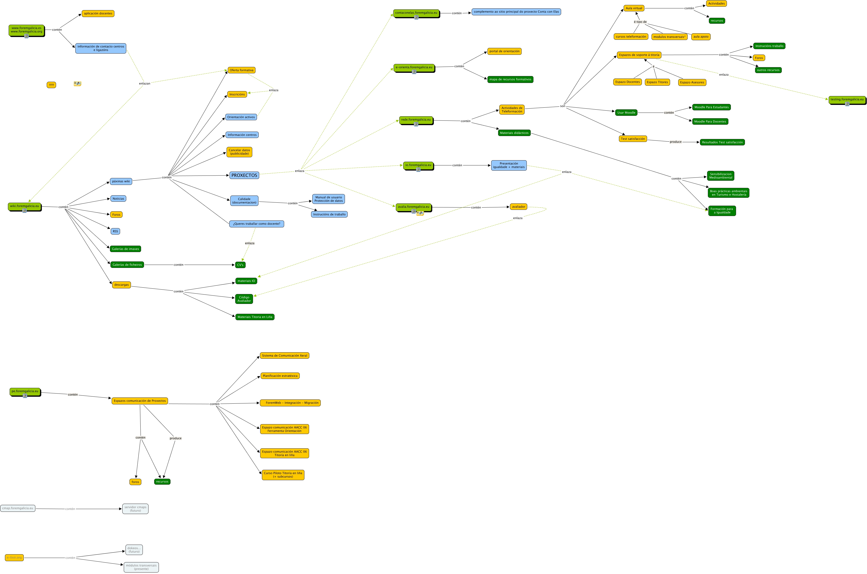 Este mapa conceptual tiene información relacionada a: Sistemas web, páxinas wiki contén Inscricións, Presentación igualdade + materiais enlaza materiais IO, PROXECTOS enlaza e-orienta.foremgalicia.eu, aula apoio é tipo de Aula virtual, páxinas wiki contén ¿Queres traballar como docente?, www.foremgalicia.es www.foremgalicia.org contén aplicación docentes, páxinas wiki contén Orientación activos, Orientación activos enlaza Inscricións, wiki.foremgalicia.eu contén Galerías de imaxes, rede.foremgalicia.eu contén Actividades de Teleformación, Espazos comunicación de Proxectos contén Sistema de Comunicación Xeral, Espazos de soporte á titoría contén Instrucións traballo, Espazos comunicación de Proxectos contén Espazo comunicación AACC 06 Ferramenta Orientación, PROXECTOS enlaza io.foremgalicia.eu, información de contacto centros e ligazóns enlazan wiki.foremgalicia.eu, Calidade (documentacion) contén Instrucións de traballo, Espazos comunicación de Proxectos contén recursos, Materiais didácticos contén Sensibilizacion Medioambiental, Oferta formativa enlaza Inscricións, cmap.foremgalicia.eu contén servidor cmaps (futuro)