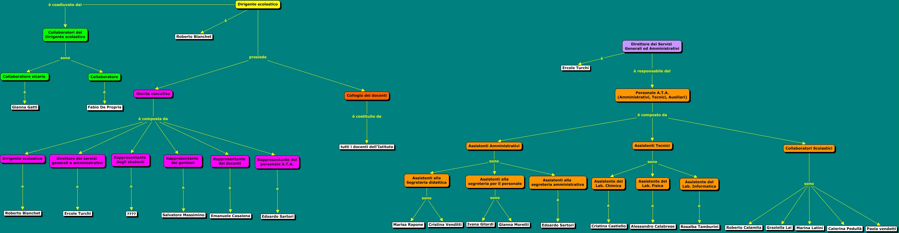 Questa Mappa Concettuale ha informazioni correlate a: Organigramma2, Collaboratore vicario è Gianna Gatti, Dirigente scolastico presiede Collegio dei docenti, Assistenti alla segreteria per il personale sono Gianna Moretti, Rappresentante del personale A.T.A. è Edoardo Sartori, Giunta esecutiva è composta da Direttore dei servizi generali e amministrativi, Giunta esecutiva è composta da Rappresentante degli studenti, Assistenti Tecnici sono Assistente del Lab. Fisica, Assistenti alla segreteria amministrativa è Edoardo Sartori, Assistenti Amministrativi sono Assistenti alla Segreteria didattica, Collaboratori del Dirigente scolastico sono Collaboratore vicario