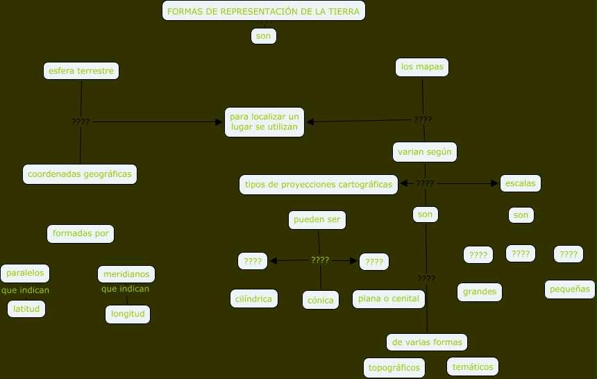 Este mapa conceptual tiene información relacionada a: mapa conceptual pablo, paralelos que indican latitud, los mapas ???? varian según, esfera terrestre ???? coordenadas geográficas, son ???? de varias formas, FORMAS DE REPRESENTACIÓN DE LA TIERRA ???? son, los mapas ???? para localizar un lugar se utilizan, pueden ser ???? cónica, esfera terrestre ???? para localizar un lugar se utilizan, meridianos que indican longitud, varian según ???? tipos de proyecciones cartográficas