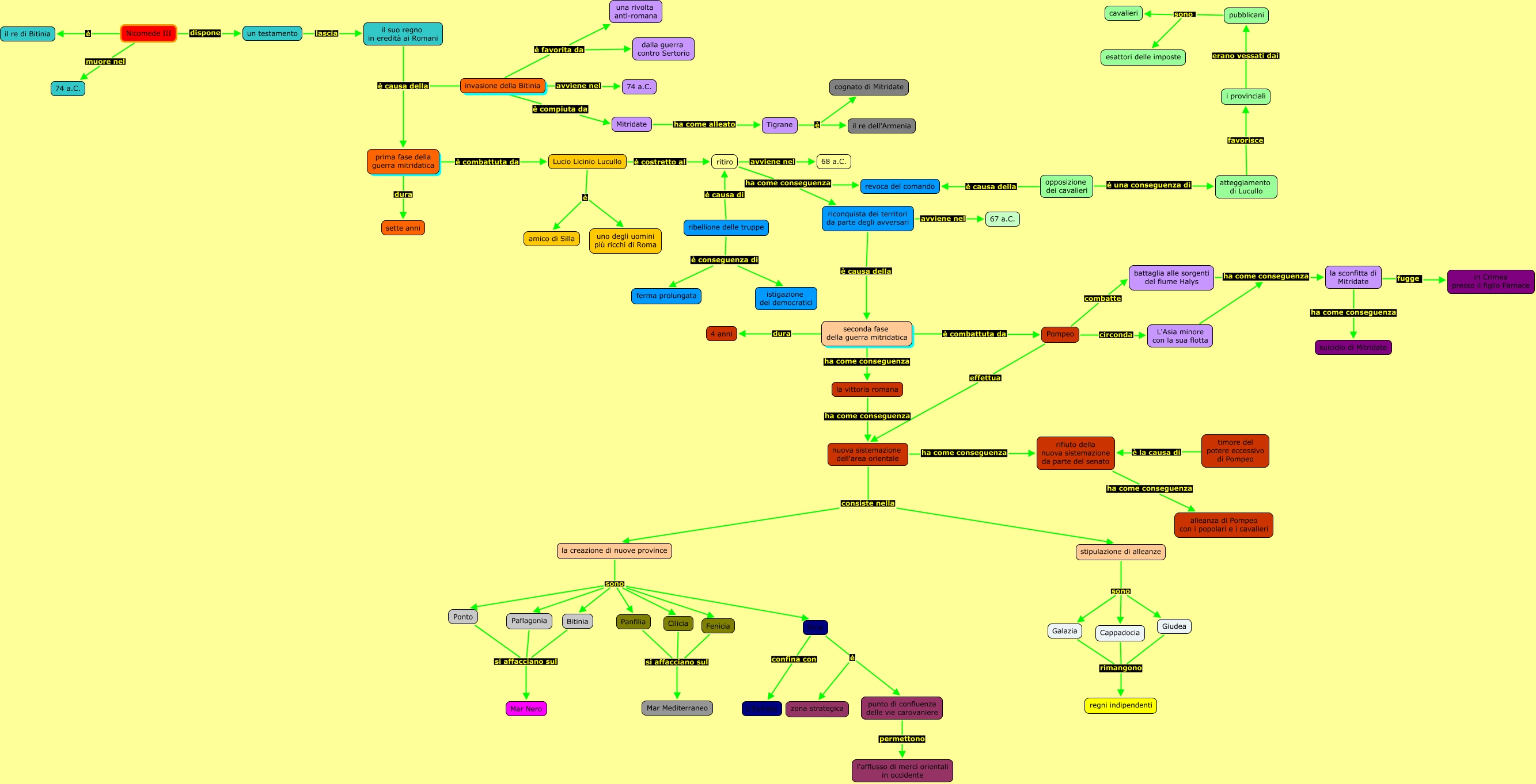 Questa Mappa Concettuale ha informazioni correlate a: --guerra mitridatica brenda--, Siria è punto di confluenza delle vie carovaniere, seconda fase della guerra mitridatica dura 4 anni, invasione della Bitinia è favorita da una rivolta anti-romana, Paflagonia si affacciano sul Mar Nero, la creazione di nuove province sono Bitinia, Pompeo circonda L'Asia minore con la sua flotta, la sconfitta di Mitridate ha come conseguenza suicidio di Mitridate, pubblicani sono cavalieri, stipulazione di alleanze sono Galazia, battaglia alle sorgenti del fiume Halys ha come conseguenza la sconfitta di Mitridate