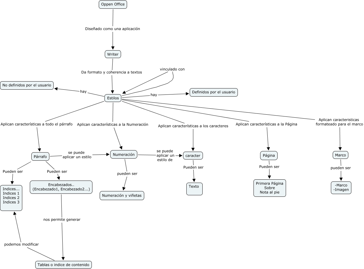 Este mapa conceptual tiene información relacionada a: ESTILOS BELEN, Párrafo se puede aplicar un estilo Numeración, Estilos Aplican características a la Numeración Numeración, Oppen Office Diseñado como una aplicación Writer, Estilos Aplican características a todo el párrafo Párrafo, Párrafo Pueden ser Indices... Indices 1 Indices 2 Indices 3, Estilos hay No definidos por el usuario, caracter Pueden ser Texto, Writer Da formato y coherencia a textos Estilos, Encabezados.. (Encabezado1, Encabezado2...) nos permite generar Tablas o indice de contenido, Numeración pueden ser Numeración y viñetas