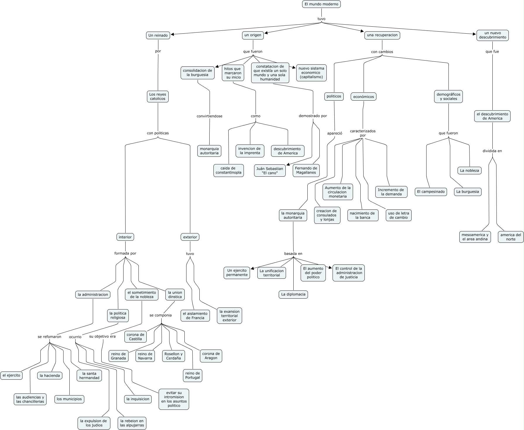 Este mapa conceptual tiene información relacionada a: 08-Jose Fernández Caballero-Edadmoderna, politicos apareció la monarquia autoritaria, la politica religiosa ocurrio la rebeion en las alpujarras, Los reyes catolicos con politicas exterior, un origen que fueron constatacion de que existía un solo mundo y una sola humanidad, económicos caracterizados por nacimiento de la banca, la administracion se refomaron el ejercito, el descubrimiento de America dividida en mesoamerica y el area andina, económicos caracterizados por Incremento de la demanda, Los reyes catolicos con politicas interior, El mundo moderno tuvo un origen