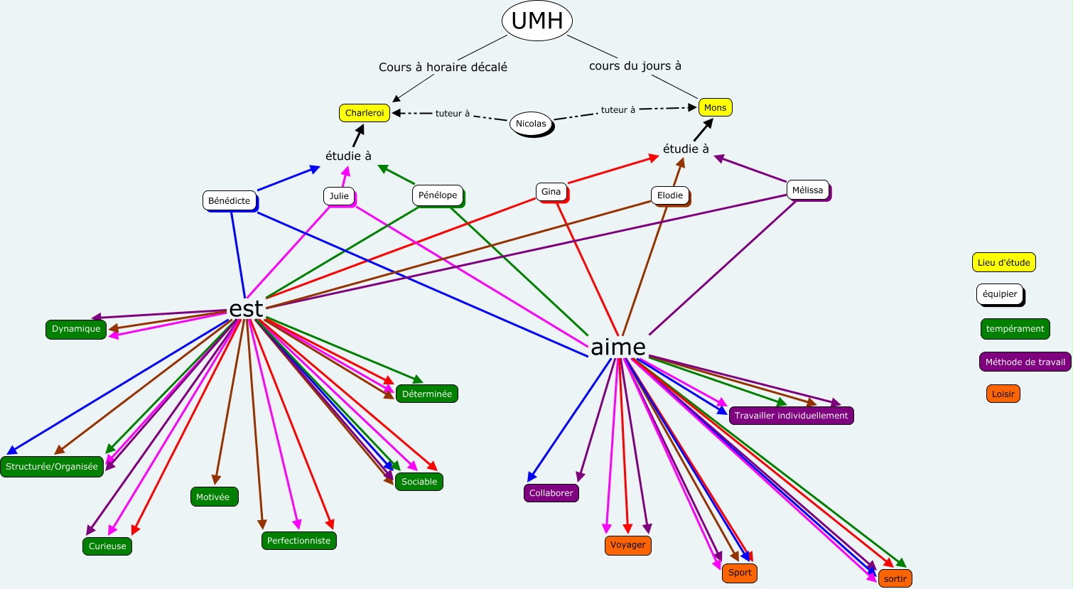 This Concept Map, created with IHMC CmapTools, has information related to: Profil N_2 (4), Mélissa est Structurée/Organisée, Bénédicte est Motivée, Pénélope est Structurée/Organisée, Julie est Perfectionniste, Bénédicte est Perfectionniste, Gina aime Sport, Pénélope est Perfectionniste, Pénélope aime Travailler individuellement, Pénélope est Déterminée, Mélissa aime Sport, Bénédicte est Structurée/Organisée, Elodie est Structurée/Organisée, Elodie aime Sport, Elodie aime Travailler individuellement, Gina aime Sport, Pénélope aime sortir, Pénélope est Motivée, Elodie est Dynamique, Pénélope est Sociable, Bénédicte aime Voyager