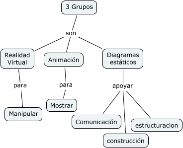 Organizadoresyprocesos, 3 Grupos son Animación, Diagramas estáticos apoyar Comunicación, 3 Grupos son Diagramas estáticos, 3 Grupos son Realidad Virtual, Realidad Virtual para Manipular, Diagramas estáticos apoyar construcción, Animación para Mostrar, Diagramas estáticos apoyar estructuracion