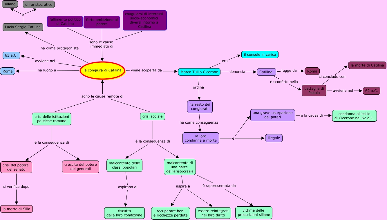 Questa Mappa Concettuale ha informazioni correlate a: La Congiura Di Catilina......Lara Ceccarelli 2E, la loro condanna a morte è illegale, la congiura di Catilina ha luogo a Roma, la congiura di Catilina avviene nel 63 a.C., fallimento politico di Catilina sono le cause immediate di la congiura di Catilina, crisi sociale sono le cause remote di la congiura di Catilina, Marco Tullio Cicerone denuncia Catilina, crisi delle istituzioni politiche romane è la conseguenza di crescita del potere dei generali, l'arresto dei congiurati ha come conseguenza la loro condanna a morte, crisi delle istituzioni politiche romane sono le cause remote di la congiura di Catilina, Lucio Sergio Catilina è un aristocratico