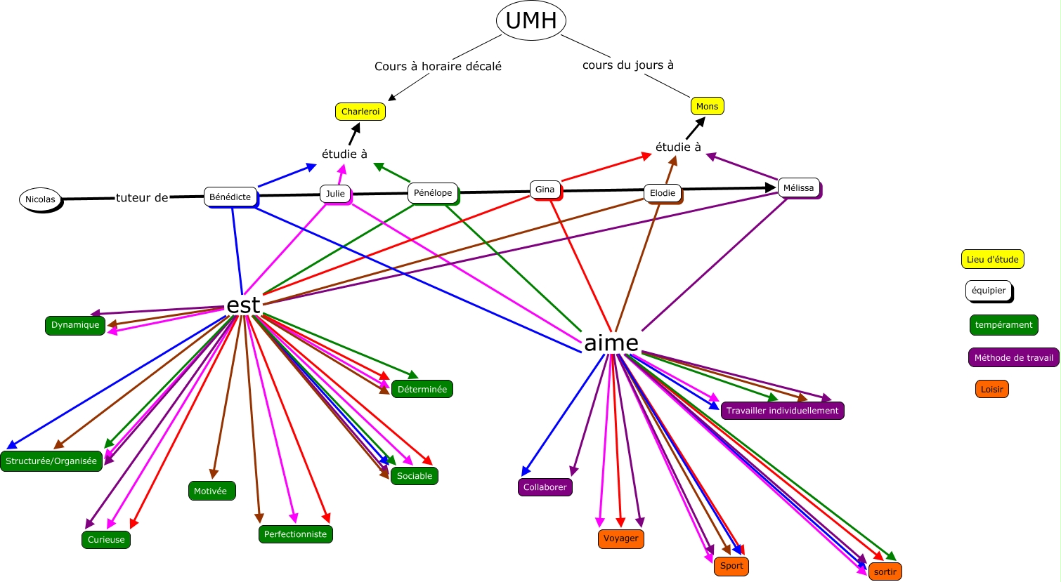 This Concept Map, created with IHMC CmapTools, has information related to: Profil N_2 (4'), Elodie est Perfectionniste, Mélissa est Motivée, Mélissa aime Sport, Pénélope est Dynamique, Gina est Déterminée, Mélissa est Sociable, Julie est Sociable, Mélissa est Sociable, Julie aime Travailler individuellement, Julie est Curieuse, Bénédicte aime Sport, Bénédicte est Sociable, Julie aime Travailler individuellement, Mélissa est Sociable, Mélissa aime sortir, Julie est Sociable, Julie aime sortir, Julie aime Sport, Gina aime Voyager, Gina est Perfectionniste