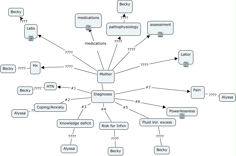 case study, Hx ???? Becky, Diagnoses #7 Pain, Mother ???? Labs, Mother ???? Diagnoses, Diagnoses #2 Coping/Anxiety, Labs ???? Becky, Mother medications medications, Risk for Infxn ???? Becky, Diagnoses #1 HTN, Diagnoses #4 Risk for Infxn