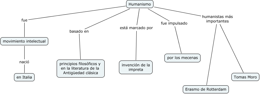 Este mapa conceptual tiene información relacionada a: 08-Pablo Cossío Guerrero-Humanismo, Humanismo basado en principios filosóficos y en la literatura de la Antigüedad clásica, Humanismo humanistas más importantes Erasmo de Rotterdam, Humanismo humanistas más importantes Tomas Moro, Humanismo fue movimiento intelectual, Humanismo fue impulsado por los mecenas, Humanismo está marcado por invención de la impreta, movimiento intelectual nació en Italia