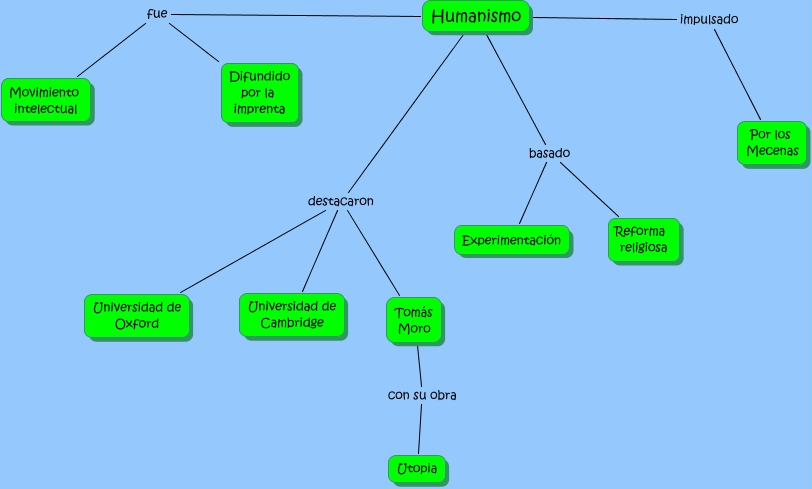 Este mapa conceptual tiene información relacionada a: 23-Juan Antonio Rguez-Tenorio-Humanismo, Humanismo basado Experimentación, Humanismo impulsado Por los Mecenas, Humanismo destacaron Universidad de Cambridge, Humanismo fue Difundido por la imprenta, Humanismo fue Movimiento intelectual, Tomás Moro con su obra Utopia, Humanismo destacaron Tomás Moro, Humanismo destacaron Universidad de Oxford, Humanismo basado Reforma religiosa