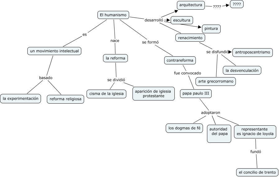 Este mapa conceptual tiene información relacionada a: 18-Milagros Moreno García, contrareforma fue convocado papa paulo III, papa paulo III adoptaron los dogmas de fé, El humanismo desarrolló pintura, El humanismo nace la reforma, papa paulo III adoptaron autoridad del papa, la reforma se dividió cisma de la iglesia, papa paulo III adoptaron representante es ignacio de loyola, El humanismo desarrolló renacimiento, arquitectura ???? ????, la reforma se dividió aparición de iglesia protestante