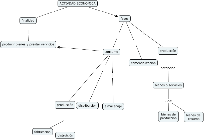 Este mapa conceptual tiene información relacionada a: Ud3maria bejarano 3oB, consumo distribuición, ACTIVDAD ECONOMICA fases, fases consumo, bienes o servicios tipos bienes de producción, fases comercialización, producción fabricación, finalidad producir bienes y prestar servicios, consumo almacenaje, producción obtención bienes o servicios, consumo producir bienes y prestar servicios