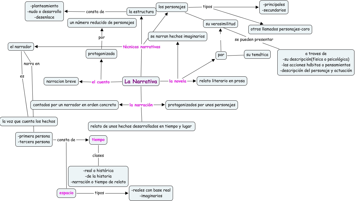 Este mapa conceptual tiene información relacionada a: Maribel Rodríguez Reyes, tiempo clases -real o histórica -de la historia -narración o tiempo de relato, -primera persona -tercera persona consta de tiempo, los personajes se pueden presentar a traves de -su descripción(fisica o psicológica) -las acciones hábitos o pensamientos -descripción del personaje y actuación, protagonizada por un número reducido de personajes, por su verosimilitud, -primera persona -tercera persona consta de espacio, espacio tipos -reales con base real -imaginarios, los personajes tipos otros llamados personajes-coro, La Narrativa la narración contados por un narrador en orden concreto, La Narrativa técnicas narrativas el narrador