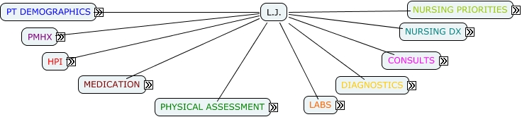 This Concept Map has information related to: ICU Cmap2, Home Meds include Metoprolol 25mg PO BID, PMHx includes arthralgia of knees, Hospital Meds include ASA 81mg PO Daily, Neurological demonstrates Pt is A&Ox3. She follows directions and has clear and coherent speech. Pupils are equal, round, and reactive to light. Pt moves all extremities, has equal grasps, and has functional ROM. Pt denies any numbness or tingling, and has no muscle weakness or dystrophy., Genitourinary demonstrates Pt is continent and voids without difficulty. Urine is clear and yellow. No bladder distension is present., Medications include Home Meds, Labs (11/19) include Accuchecks, Sed rate 77 is High which can be from rheumatoid arthritis or inflammation of thyroid gland. Chronic kidney disease can also cause increased sed rate., L.J. had Diagnostics, Kdur 20 meq PO Daily is a supplement to prevent hypokalemia. Can cause cardiac changes, and N/V/D. Do not crush or chew.