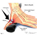 Resources for Gamekeeper's Thumb game8.gif Gamekeeper's thumb.jpg Gamekeeper's Thumb.cmap incision site.jpg Jamming Finger.jpg Ski pole fall.jpg Steering wheel.jpg Stress Test.jpg Stress Test Xray.jpg Thumb_flexion.gif thumb exercises.gif Xray.jpg
