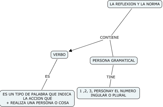 Este mapa conceptual tiene información relacionada a: DIEGO VIRUES, LA REFLEXION Y LA NORMA CONTIENE VERBO, PERSONA GRAMATICAL TINE 1 ,2, 3, PERSONAY EL NUMERO INGULAR O PLURAL, VERBO ES ES UN TIPO DE PALABRA QUE INDICA LA ACCION QUE + REALIZA UNA PERSONA O COSA, LA REFLEXION Y LA NORMA CONTIENE PERSONA GRAMATICAL
