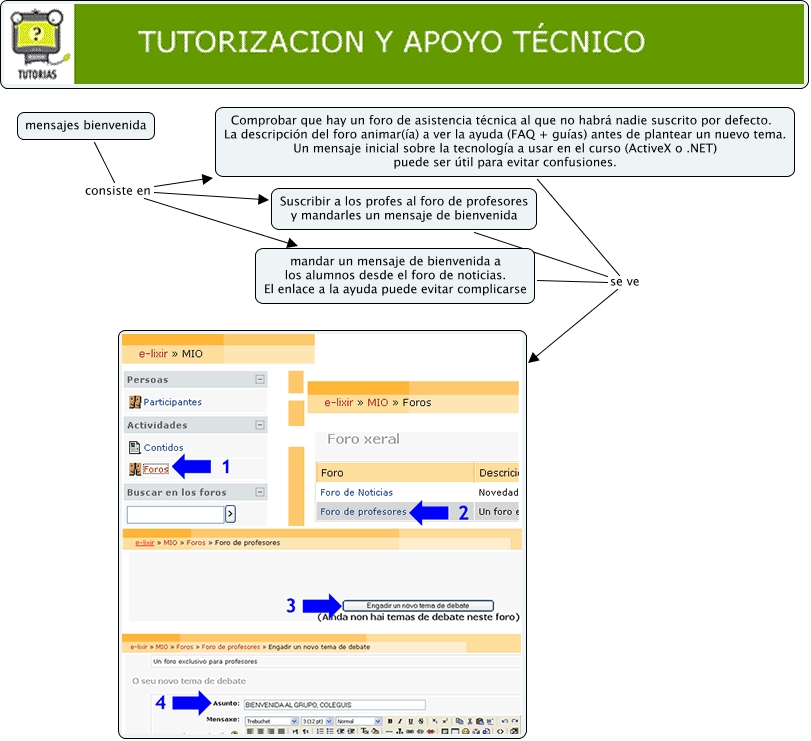 Este mapa conceptual tiene información relacionada a: antes3, mensajes bienvenida consiste en Comprobar que hay un foro de asistencia técnica al que no habrá nadie suscrito por defecto. La descripción del foro animar(ía) a ver la ayuda (FAQ + guías) antes de plantear un nuevo tema. Un mensaje inicial sobre la tecnología a usar en el curso (ActiveX o .NET) puede ser útil para evitar confusiones., Suscribir a los profes al foro de profesores y mandarles un mensaje de bienvenida se ve, Comprobar que hay un foro de asistencia técnica al que no habrá nadie suscrito por defecto. La descripción del foro animar(ía) a ver la ayuda (FAQ + guías) antes de plantear un nuevo tema. Un mensaje inicial sobre la tecnología a usar en el curso (ActiveX o .NET) puede ser útil para evitar confusiones. se ve, mensajes bienvenida consiste en Suscribir a los profes al foro de profesores y mandarles un mensaje de bienvenida, mandar un mensaje de bienvenida a los alumnos desde el foro de noticias. El enlace a la ayuda puede evitar complicarse se ve, mensajes bienvenida consiste en mandar un mensaje de bienvenida a los alumnos desde el foro de noticias. El enlace a la ayuda puede evitar complicarse