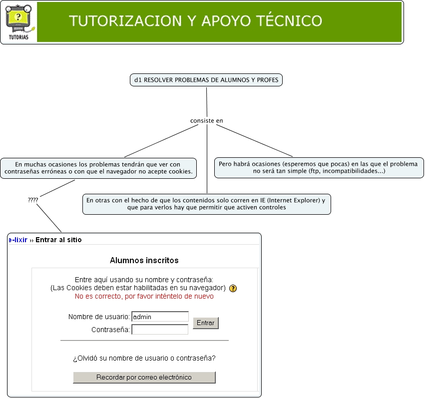 Este mapa conceptual tiene información relacionada a: durante1, En muchas ocasiones los problemas tendrán que ver con contraseñas erróneas o con que el navegador no acepte cookies. ????, d1 RESOLVER PROBLEMAS DE ALUMNOS Y PROFES consiste en En muchas ocasiones los problemas tendrán que ver con contraseñas erróneas o con que el navegador no acepte cookies., d1 RESOLVER PROBLEMAS DE ALUMNOS Y PROFES consiste en En otras con el hecho de que los contenidos solo corren en IE (Internet Explorer) y que para verlos hay que permitir que activen controles, d1 RESOLVER PROBLEMAS DE ALUMNOS Y PROFES consiste en Pero habrá ocasiones (esperemos que pocas) en las que el problema no será tan simple (ftp, incompatibilidades...)
