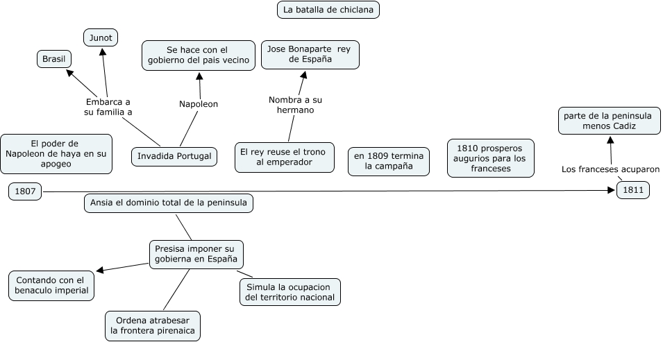 Este mapa conceptual tiene información relacionada a: 13 -Carmelo Fornell Diaz, Invadida Portugal Embarca a su familia a Brasil, Invadida Portugal Embarca a su familia a Junot, 1811 Los franceses acuparon parte de la peninsula menos Cadiz, Invadida Portugal Napoleon Se hace con el gobierno del pais vecino, 1807 1811, Presisa imponer su gobierna en España Simula la ocupacion del territorio nacional, Presisa imponer su gobierna en España Contando con el benaculo imperial, El rey reuse el trono al emperador Nombra a su hermano Jose Bonaparte rey de España, Ansia el dominio total de la peninsula Ordena atrabesar la frontera pirenaica