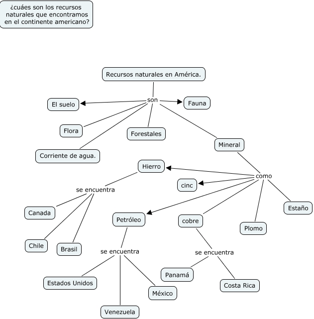 Félix y Doris, Recursos naturales en América. son Mineral, Mineral como cinc, Recursos naturales en América. son Forestales, Hierro se encuentra Canada, Mineral como Hierro, Recursos naturales en América. son Corriente de agua., cobre se encuentra Costa Rica, Petróleo se encuentra México, cobre se encuentra Panamá, Hierro se encuentra Brasil