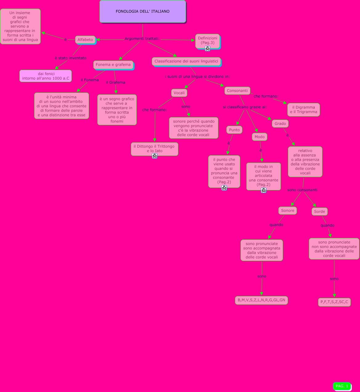 Questa Cmap, creata con IHMC CmapTools, contiene informazioni relative a: La fonologia dell'italiano...Pag.1, Alfabeto è stato inventato dai fenici intorno all'anno 1000 a.C, Vocali sono sonore perché quando vengono pronunciate c'è la vibrazione delle corde vocali, Alfabeto è Un insieme di segni grafici che servono a rappresentare in forma scritta i suoni di una lingua, relativo alla assenza o alla presenza della vibrazione delle corde vocali sono consonanti Sonore, Consonanti si classificano grazie al: Punto, Sorde quando sono pronunciate non sono accompagnate dalla vibrazione delle corde vocali, FONOLOGIA DELL' ITALIANO Argomenti trattati: Fonema e grafema, Fonema e grafema il Grafema è un segno grafico che serve a rappresentare in forma scritta uno o più fonemi, Grado è relativo alla assenza o alla presenza della vibrazione delle corde vocali, Consonanti si classificano grazie al: Grado, Classificazione dei suoni linguistici i suoni di una lingua si dividono in: Consonanti, sono pronunciate non sono accompagnate dalla vibrazione delle corde vocali sono P,F,T,S,Z,SC,C, Sonore quando sono pronunciate sono accompagnata dalla vibrazione delle corde vocali, Punto è il punto che viene usato quando si pronuncia una consonante (Pag.2), sono pronunciate sono accompagnata dalla vibrazione delle corde vocali sono B,M,V,S,Z,L,N,R,G,GL,GN, Consonanti si classificano grazie al: Modo, FONOLOGIA DELL' ITALIANO Argomenti trattati: Definizioni (Pag.3), FONOLOGIA DELL' ITALIANO Argomenti trattati: Classificazione dei suoni linguistici, Classificazione dei suoni linguistici i suoni di una lingua si dividono in: Vocali, Fonema e grafema il Fonema è l'unità minima di un suono nell'ambito di una lingua che consente di formare delle parole e una distinzione tra esse