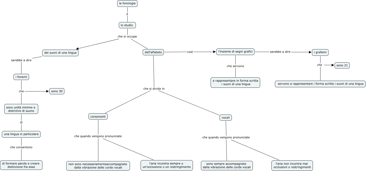 Questa Mappa Concettuale ha informazioni correlate a: fonologia, dell'alfabeto che si divide in vocali, consonanti che quando vengono pronunciate l'aria incontra sempre o un'occlusione o un restringimento, l'insieme di segni grafici che servono a rappresentare in forma scritta i suoni di una lingua, vocali che quando vengono pronunciate sono sempre accompagnate dalla vibrazione delle corde vocali, i fonemi che sono unità minime e distintive di suono, dei suoni di una lingua sarebbe a dire i fonemi, dell'alfabeto che si divide in consonanti, consonanti che quando vengono pronunciate non sono necessariamenteaccompagnate dalla vibrazione delle corde vocali, i grafemi che sono 21, dell'alfabeto cioè l'insieme di segni grafici, la fonologia è lo studio, i grafemi che servono a rappresentare i forma scritta i suoni di una lingua, vocali che quando vengono pronunciate l'aria non incontra mai occlusioni o restringimenti, l'insieme di segni grafici sarebbe a dire i grafemi, i fonemi che sono 30, lo studio che si occupa dell'alfabeto, lo studio che si occupa dei suoni di una lingua, sono unità minime e distintive di suono di una lingua in particolare, una lingua in particolare che consentono di formare parole e creare distinzione fra esse
