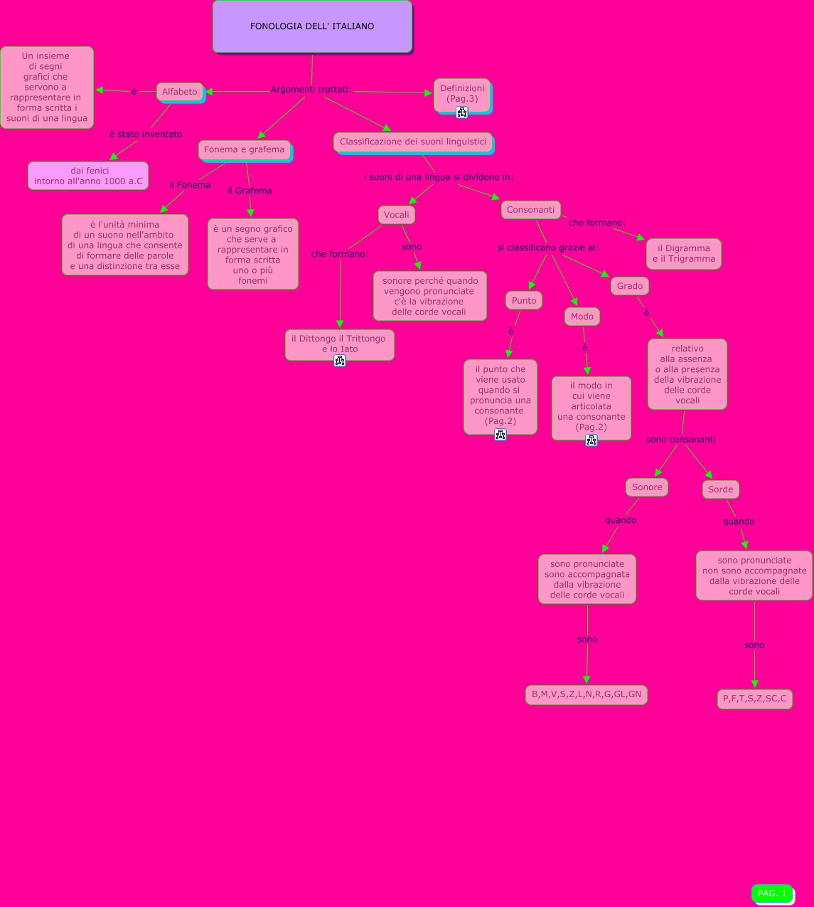 Questa Mappa Concettuale ha informazioni correlate a: La fonologia dell'italiano...Pag.1, Vocali sono sonore perché quando vengono pronunciate c'è la vibrazione delle corde vocali, Alfabeto è stato inventato dai fenici intorno all'anno 1000 a.C, relativo alla assenza o alla presenza della vibrazione delle corde vocali sono consonanti Sonore, Alfabeto è Un insieme di segni grafici che servono a rappresentare in forma scritta i suoni di una lingua, Consonanti si classificano grazie al: Punto, Sorde quando sono pronunciate non sono accompagnate dalla vibrazione delle corde vocali, Fonema e grafema il Grafema è un segno grafico che serve a rappresentare in forma scritta uno o più fonemi, FONOLOGIA DELL' ITALIANO Argomenti trattati: Fonema e grafema, Grado è relativo alla assenza o alla presenza della vibrazione delle corde vocali, Consonanti si classificano grazie al: Grado