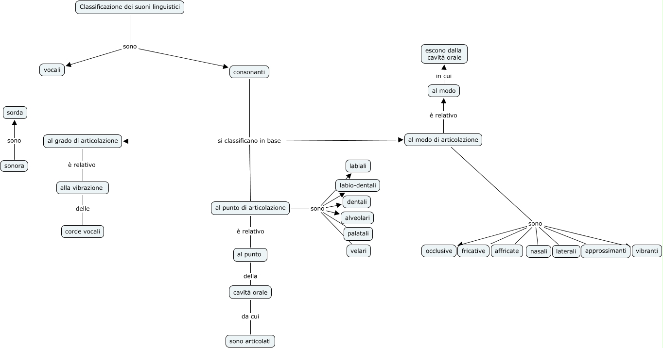 Questa Mappa Concettuale ha informazioni correlate a: classificazione dei suoni linguistici, al modo di articolazione sono approssimanti, al grado di articolazione sono sorda, al punto di articolazione sono labio-dentali, al grado di articolazione è relativo alla vibrazione, Classificazione dei suoni linguistici sono consonanti, al modo di articolazione sono affricate, al punto di articolazione sono dentali, al modo in cui escono dalla cavità orale, consonanti si classificano in base al grado di articolazione, alla vibrazione delle corde vocali