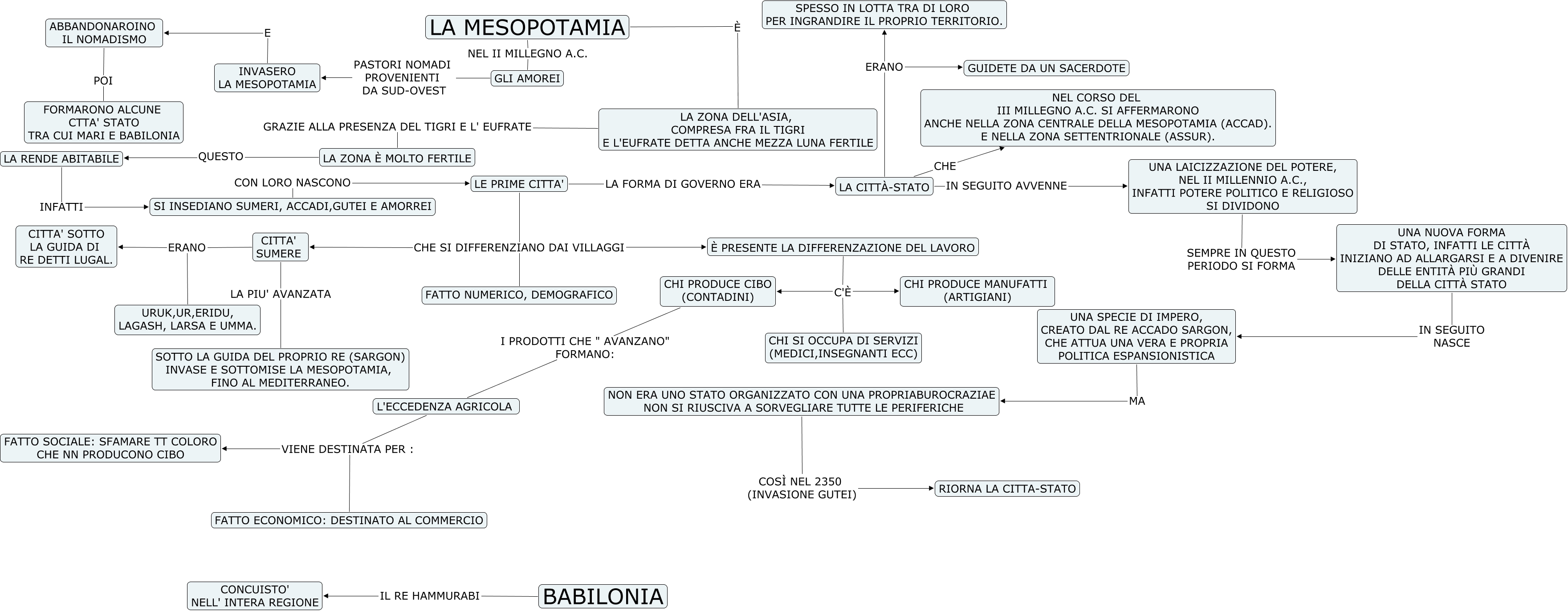 Questa Cmap, creata con IHMC CmapTools, contiene informazioni relative a: la mesopotamia Aurora Petrucci & Sabrina Mattozzi, ABBANDONAROINO IL NOMADISMO POI FORMARONO ALCUNE CTTA' STATO TRA CUI MARI E BABILONIA, LE PRIME CITTA' CHE SI DIFFERENZIANO DAI VILLAGGI È PRESENTE LA DIFFERENZAZIONE DEL LAVORO, LA CITTÀ-STATO ERANO SPESSO IN LOTTA TRA DI LORO PER INGRANDIRE IL PROPRIO TERRITORIO., È PRESENTE LA DIFFERENZAZIONE DEL LAVORO C'È CHI PRODUCE MANUFATTI (ARTIGIANI), CITTA' SUMERE ERANO URUK,UR,ERIDU, LAGASH, LARSA E UMMA., LE PRIME CITTA' LA FORMA DI GOVERNO ERA LA CITTÀ-STATO, CITTA' SUMERE LA PIU' AVANZATA SOTTO LA GUIDA DEL PROPRIO RE (SARGON) INVASE E SOTTOMISE LA MESOPOTAMIA, FINO AL MEDITERRANEO., LA CITTÀ-STATO IN SEGUITO AVVENNE UNA LAICIZZAZIONE DEL POTERE, NEL II MILLENNIO A.C., INFATTI POTERE POLITICO E RELIGIOSO SI DIVIDONO, INVASERO LA MESOPOTAMIA E ABBANDONAROINO IL NOMADISMO, SI INSEDIANO SUMERI, ACCADI,GUTEI E AMORREI CON LORO NASCONO LE PRIME CITTA', LA RENDE ABITABILE INFATTI SI INSEDIANO SUMERI, ACCADI,GUTEI E AMORREI, UNA SPECIE DI IMPERO, CREATO DAL RE ACCADO SARGON, CHE ATTUA UNA VERA E PROPRIA POLITICA ESPANSIONISTICA MA NON ERA UNO STATO ORGANIZZATO CON UNA PROPRIABUROCRAZIAE NON SI RIUSCIVA A SORVEGLIARE TUTTE LE PERIFERICHE, È PRESENTE LA DIFFERENZAZIONE DEL LAVORO C'È CHI SI OCCUPA DI SERVIZI (MEDICI,INSEGNANTI ECC), L'ECCEDENZA AGRICOLA VIENE DESTINATA PER : FATTO ECONOMICO: DESTINATO AL COMMERCIO, LA ZONA DELL'ASIA, COMPRESA FRA IL TIGRI E L'EUFRATE DETTA ANCHE MEZZA LUNA FERTILE GRAZIE ALLA PRESENZA DEL TIGRI E L' EUFRATE LA ZONA È MOLTO FERTILE, L'ECCEDENZA AGRICOLA VIENE DESTINATA PER : FATTO SOCIALE: SFAMARE TT COLORO CHE NN PRODUCONO CIBO, LE PRIME CITTA' CHE SI DIFFERENZIANO DAI VILLAGGI CITTA' SUMERE, GLI AMOREI PASTORI NOMADI PROVENIENTI DA SUD-OVEST INVASERO LA MESOPOTAMIA, LA ZONA È MOLTO FERTILE QUESTO LA RENDE ABITABILE, LA CITTÀ-STATO CHE NEL CORSO DEL III MILLEGNO A.C. SI AFFERMARONO ANCHE NELLA ZONA CENTRALE DELLA MESOPOTAMIA (ACCAD). E NELLA ZONA SETTENTRIONALE (ASSUR).