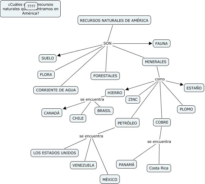 RECURSOS NATURALES T. MARÌA C. DE ESPINOZA, MINERALES como PLOMO, MINERALES como ZINC, MINERALES como HIERRO, COBRE se encuentra PANAMÀ, PETRÒLEO se encuentra LOS ESTADOS UNIDOS, MINERALES como COBRE, RECURSOS NATURALES DE AMÈRICA SON SUELO, RECURSOS NATURALES DE AMÈRICA SON FORESTALES, PETRÒLEO se encuentra VENEZUELA, RECURSOS NATURALES DE AMÈRICA SON MINERALES