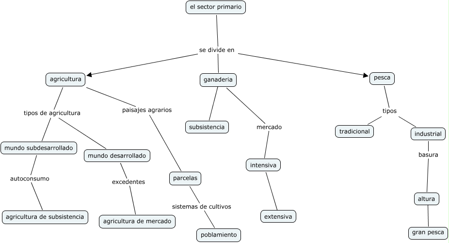 Este mapa conceptual tiene información relacionada a: adrian unidad 4, el sector primario se divide en ganaderia, mundo subdesarrollado autoconsumo agricultura de subsistencia, el sector primario se divide en pesca, agricultura tipos de agricultura mundo subdesarrollado, el sector primario se divide en agricultura, ganaderia ???? subsistencia, altura ???? gran pesca, mundo desarrollado excedentes agricultura de mercado, pesca tipos tradicional, pesca tipos industrial