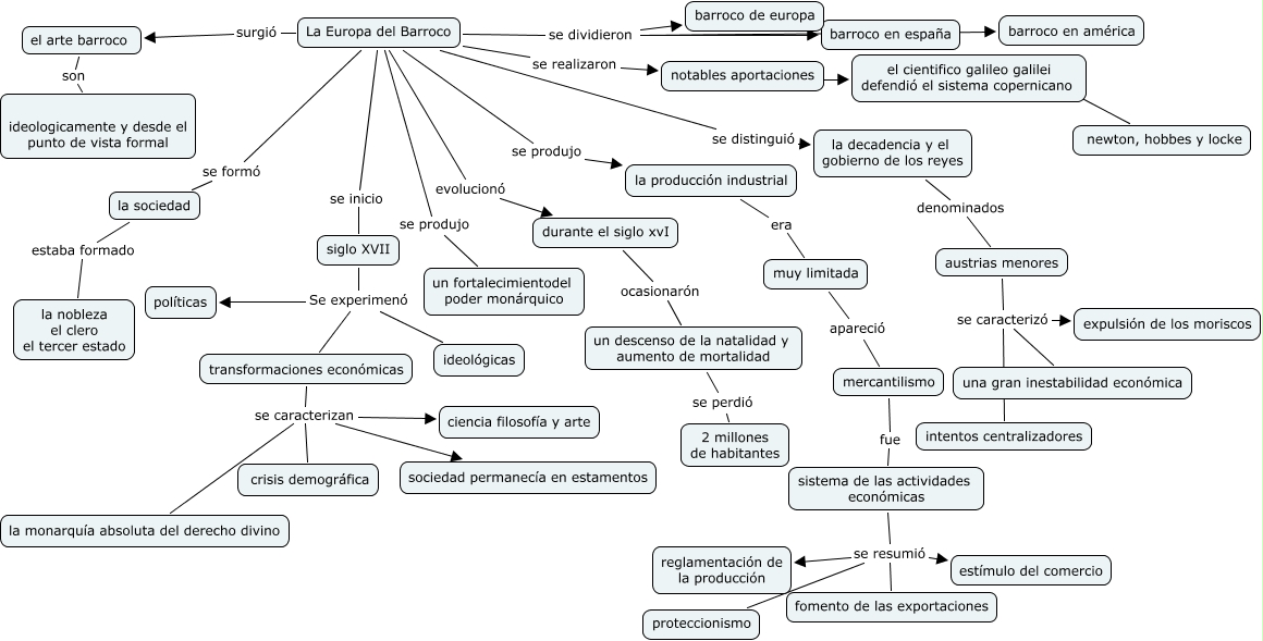 Este mapa conceptual tiene información relacionada a: Milagros_Moreno, la sociedad estaba formado la nobleza el clero el tercer estado, un descenso de la natalidad y aumento de mortalidad se perdió 2 millones de habitantes, mercantilismo fue sistema de las actividades económicas, La Europa del Barroco se inicio siglo XVII, transformaciones económicas se caracterizan la monarquía absoluta del derecho divino, transformaciones económicas se caracterizan sociedad permanecía en estamentos, transformaciones económicas se caracterizan crisis demográfica, muy limitada apareció mercantilismo, La Europa del Barroco evolucionó durante el siglo xvI, sistema de las actividades económicas se resumió reglamentación de la producción, notables aportaciones ???? el cientifico galileo galilei defendió el sistema copernicano, siglo XVII Se experimenó ideológicas, sistema de las actividades económicas se resumió fomento de las exportaciones, transformaciones económicas se caracterizan ciencia filosofía y arte, La Europa del Barroco se produjo la producción industrial, la decadencia y el gobierno de los reyes denominados austrias menores, siglo XVII Se experimenó transformaciones económicas, La Europa del Barroco surgió el arte barroco, el cientifico galileo galilei defendió el sistema copernicano ???? newton, hobbes y locke, La Europa del Barroco se formó la sociedad