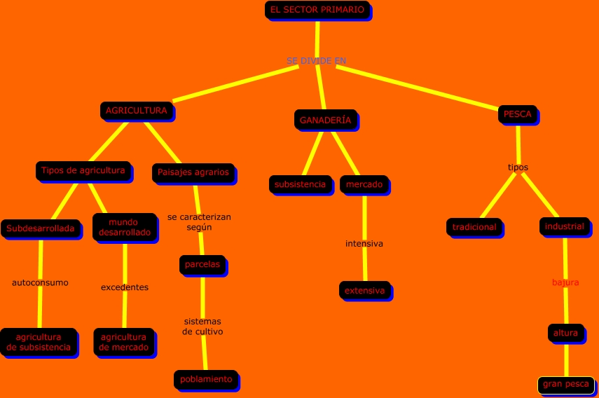 Este mapa conceptual tiene información relacionada a: esteban y luis 3ºA ESO UD.4, mundo desarrollado excedentes agricultura de mercado, EL SECTOR PRIMARIO SE DIVIDE EN PESCA, Tipos de agricultura ???? mundo desarrollado, parcelas sistemas de cultivo poblamiento, AGRICULTURA ???? Tipos de agricultura, altura ???? gran pesca, EL SECTOR PRIMARIO SE DIVIDE EN AGRICULTURA, GANADERÍA ???? subsistencia, EL SECTOR PRIMARIO SE DIVIDE EN GANADERÍA, PESCA tipos industrial