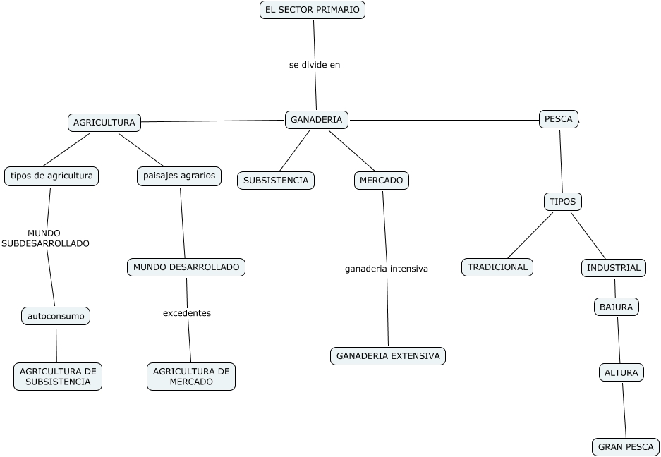 Este mapa conceptual tiene información relacionada a: ANTONIO FERNÁNDEZ 3A, EL SECTOR PRIMARIO se divide en GANADERIA, tipos de agricultura MUNDO SUBDESARROLLADO autoconsumo, GANADERIA ???? SUBSISTENCIA, GANADERIA ???? AGRICULTURA, paisajes agrarios ???? MUNDO DESARROLLADO, AGRICULTURA ???? paisajes agrarios, autoconsumo AGRICULTURA DE SUBSISTENCIA, GANADERIA ???? MERCADO, ALTURA ???? GRAN PESCA, MERCADO ganaderia intensiva GANADERIA EXTENSIVA