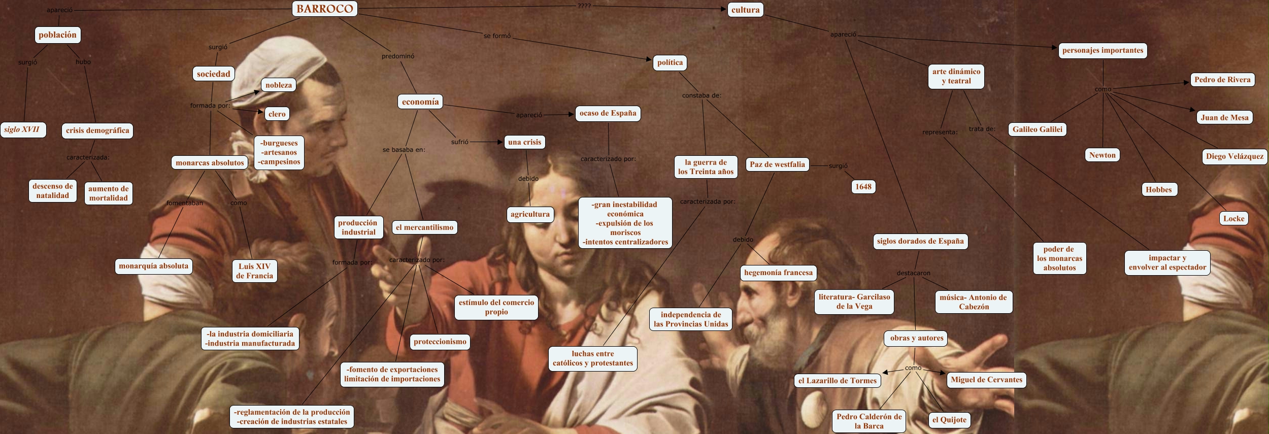 Este mapa conceptual tiene información relacionada a: Marina Jiménez Pérez nº14, sociedad formada por: clero, cultura apareció siglos dorados de España, economía apareció ocaso de España, monarcas absolutos como Luis XIV de Francia, una crisis debido agricultura, siglos dorados de España destacaron literatura- Garcilaso de la Vega, política constaba de: la guerra de los Treinta años, obras y autores como Pedro Calderón de la Barca, siglos dorados de España destacaron obras y autores, Paz de westfalia debido independencia de las Provincias Unidas, arte dinámico y teatral trata de: impactar y envolver al espectador, personajes importantes como Pedro de Rivera, crisis demográfica caracterizada: aumento de mortalidad, personajes importantes como Newton, obras y autores como el Lazarillo de Tormes, siglos dorados de España destacaron música- Antonio de Cabezón, cultura apareció arte dinámico y teatral, BARROCO predominó economía, BARROCO apareció población, el mercantilismo caracterizado por: -fomento de exportaciones limitación de importaciones