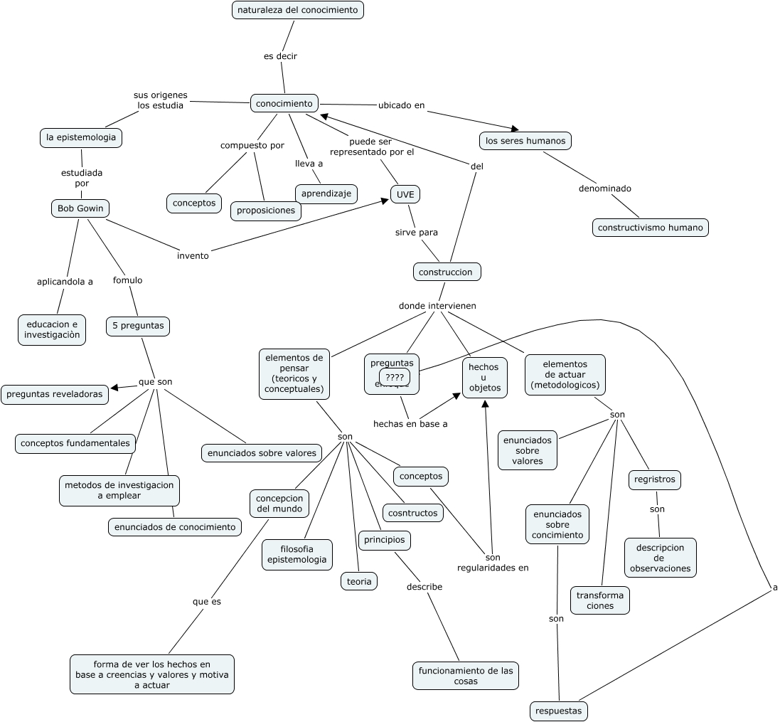 Este mapa conceptual tiene información relacionada a: naturaleza del conocimiento, elementos de pensar (teoricos y conceptuales) son principios, elementos de pensar (teoricos y conceptuales) son teoria, conocimiento lleva a aprendizaje, Bob Gowin fomulo 5 preguntas, regristros son descripcion de observaciones, elementos de pensar (teoricos y conceptuales) son concepcion del mundo, conocimiento compuesto por conceptos, elementos de pensar (teoricos y conceptuales) son filosofia epistemologia, 5 preguntas que son preguntas reveladoras, conocimiento puede ser representado por el UVE