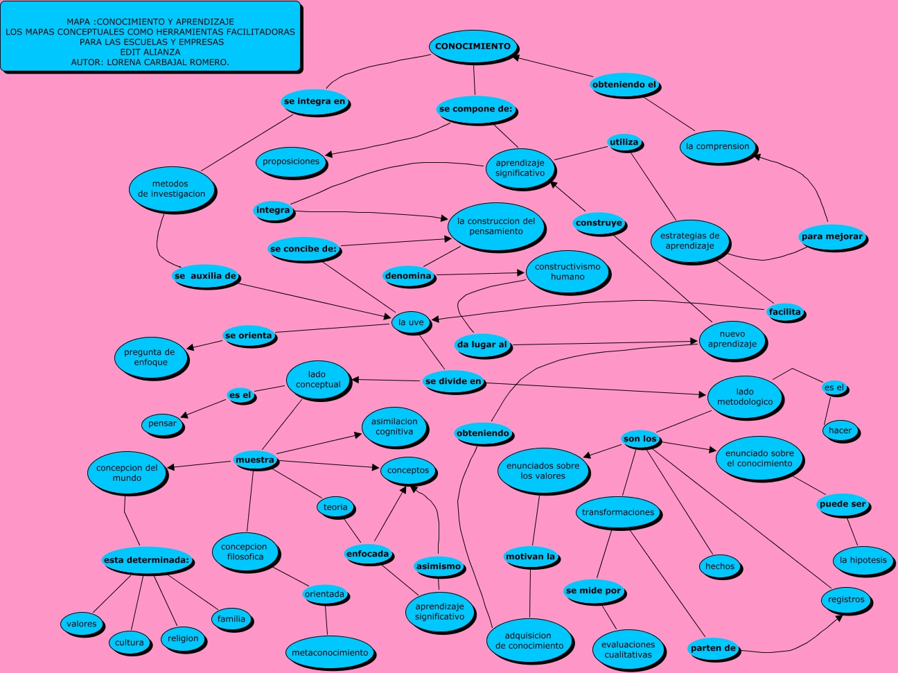 Este mapa conceptual tiene información relacionada a: CONOCIMIENTO Y APRENDIZAJE, la uve se orienta pregunta de enfoque, lado metodologico son los enunciado sobre el conocimiento, nuevo aprendizaje obteniendo adquisicion de conocimiento, CONOCIMIENTO se integra en metodos de investigacion, lado metodologico son los hechos, la uve se divide en lado conceptual, lado metodologico son los registros, lado conceptual muestra concepcion del mundo, lado conceptual es el pensar, concepcion del mundo esta determinada: familia