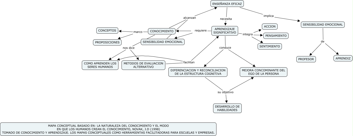 Este mapa conceptual tiene información relacionada a: ENSEÑANZA EFICAZ, APRENDIZAJE SIGNIFICATIVO conduce MEJORA CONCOMINANTE DEL EGO DE LA PERSONA, CONOCIMIENTO nos dice METODOS DE EVALUACION ALTERNATIVO, APRENDIZAJE SIGNIFICATIVO integra PENSAMIENTO, DIFERENCIACION Y RECONCILIACION DE LA ESTRUCTURA COGNITIVA su objetivo MEJORA CONCOMINANTE DEL EGO DE LA PERSONA, APRENDIZAJE SIGNIFICATIVO conduce DIFERENCIACION Y RECONCILIACION DE LA ESTRUCTURA COGNITIVA, METODOS DE EVALUACION ALTERNATIVO facilitan COMO APRENDEN LOS SERES HUMANOS, CONOCIMIENTO nos dice COMO APRENDEN LOS SERES HUMANOS, SENSIBILIDAD EMOCIONAL alcanzan ENSEÑANZA EFICAZ, CONOCIMIENTO alcanzan ENSEÑANZA EFICAZ, CONOCIMIENTO marco CONCEPTOS